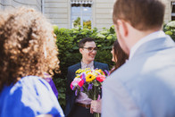 L’après-midi, tous les invités se sont rassemblés à l’extérieur pour la cérémonie laïque. Le cadre naturel, sublimé par une décoration sobre et chaleureuse, offrait un décor parfait pour un moment si intime.