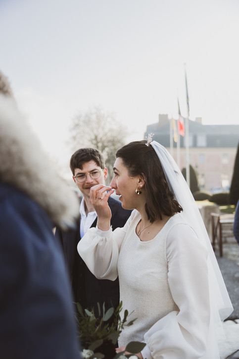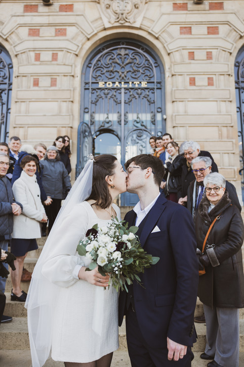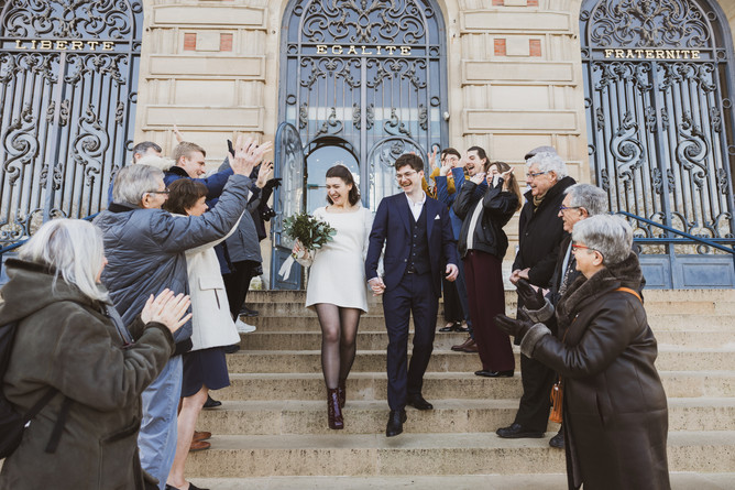Après cette belle promenade dans leur ville, nous avons pris la direction de la mairie de Versailles. Un lieu d’exception, à la hauteur de l’événement. Les invités ont commencé à arriver peu à peu, les étreintes et les éclats de voix joyeux témoignaient déjà de l’amour et de la tendresse qui unissaient tous ces proches. J'ai même aperçu quelques larmes de joie qui roulaient sur les joues.