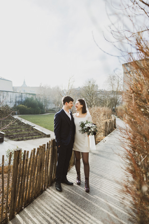 Le 1er février, à Versailles, nous avons eu la chance d’avoir un soleil puissant, une lumière idéale pour capturer toute la poésie et l’émotion de cette journée. Dès le matin, j’ai retrouvé Margo et Andrew pour une séance photo de couple. Nous avons choisi de nous balader dans les rues élégantes de Versailles, profitant des façades classiques et des petites ruelles pleines de charme. Les mariés étaient incroyablement à l’aise devant l’objectif, se prêtant au jeu avec une spontanéité et une complicité évidentes.